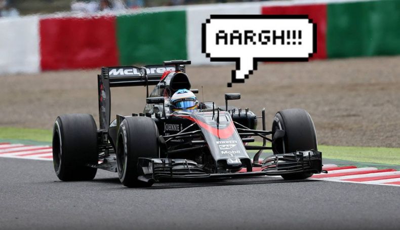 El número 1 lo ocupa Fernando Alonso, que bien podría ocupar la primera plaza en el de las imágenes más curiosas del 2015 (recordamos su estampa en Interlagos sentado en la silla de un comisario tomando el sol). Poco antes, en Suzuka, sufrió lo indecible con su McLaren Honda en Suzuka, uno de los circuitos más exigentes del año. El asturiano estalló por radio: ‘esto es vergonzoso, muy vergonzoso. ¡Motor de GP2! ¡GP2! ¡Aargh!’.