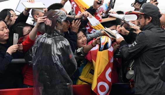 “En el hotel había más aficionados esperándome que aquí en el circuito”, comentaba Fernando Alonso en el Shanghai International Circuit cuando se dirigía a la zona de firma de autógrafos, mientras saludaba sonriente. Incluso en el aeropuerto, a su llegada había muchos aficionados con su banderas para recibirle. Esas cosas le sacan su mejor sonrisa, incluso a su compañero Stoffel Vandoorne, que le seguía de cerca. Le hacía bromas con el tema y el belga caminaba riendo abiertamente a la estela del español.