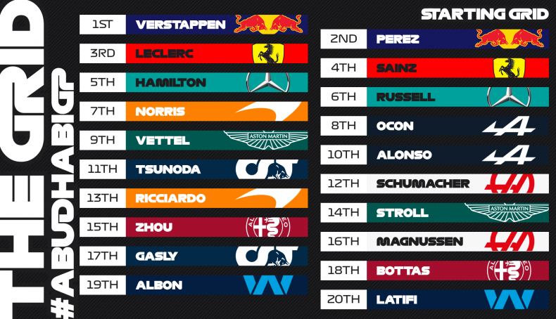 Parrilla de salida del GP de Abu Dabi