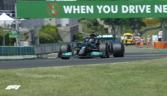 Durante la bandera roja, Bottas seguía primero seguido por Sainz, Verstappen, Norris, Hamilton, Pérez, Leclerc… con Alonso 14º sin haber colocado todavía las gomas blandas. Seis minutos más tarde se reanudó la sesión, quedaban 9 minutos. Todos los pilotos, haciendo cola en el pit lane, salieron a la pista con neumáticos blandos para intentar hacer tiempos. Y un incidente ocurrió: cuando Lance Stroll iba por la calle del pit lane, a Giovinazzi le indicaron que podía salir, y llegó a “tocar” el alerón delantero del Aston Martin.