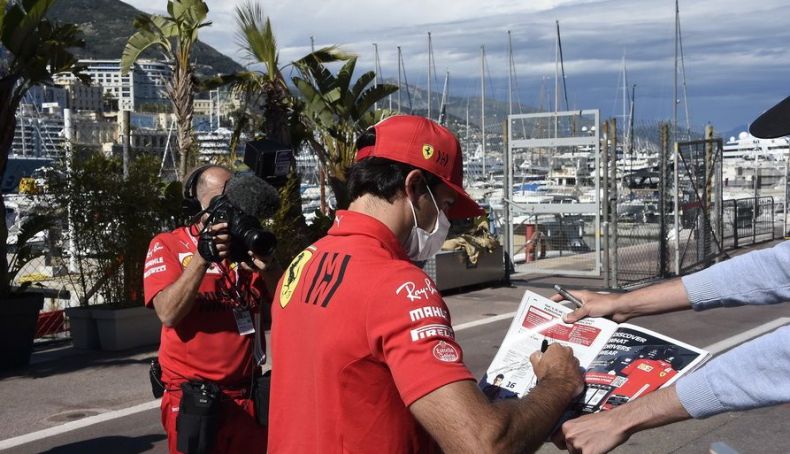Carlos Sainz firmando autógrafos hoy en Mónaco
