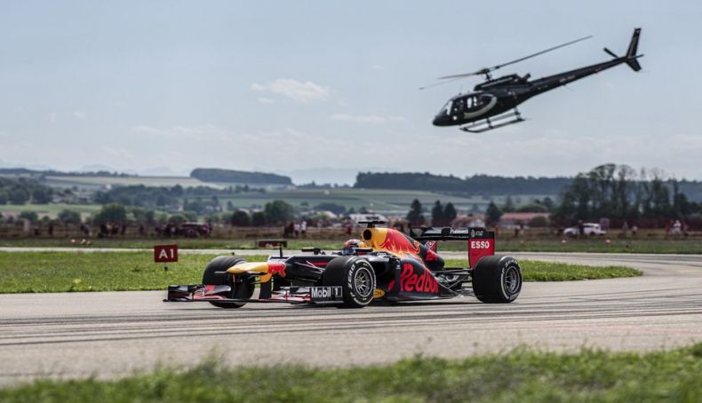 El equipo Aston Martin Red Bull Racing no para ni en verano. Decidieron llevar el RB8, el monoplaza que ganó en 2012 los campeonatos de constructores y pilotos, hasta el aeropuerto de Grenchen, a 25 km al norte de Berna, donde estaba el piloto de pruebas y reserva de la escudería, y además suizo, Sébastien Buemi.