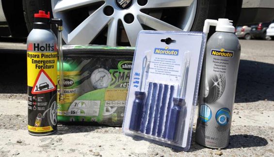 Existen tres sistemas habituales para reparar un neumático sin cambiarlo: