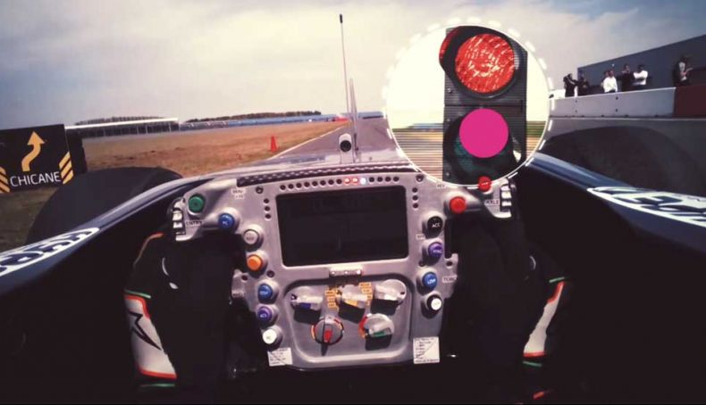 Gracias a esta tecnología de última generación, se puede saber a dónde apunta la mirada del piloto Nico Hülkenberg durante una vuelta en circuito a gran velocidad.