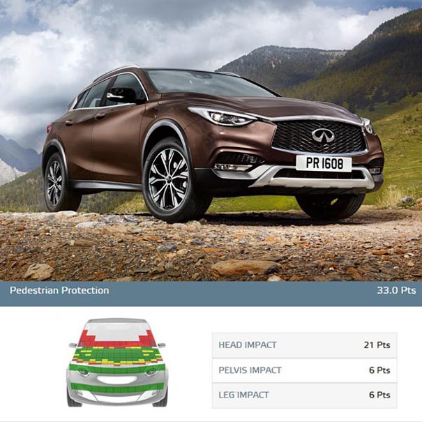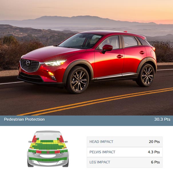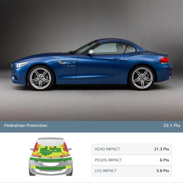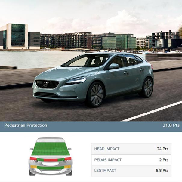 Pero, ¿hasta qué punto? Los test de EuroNCAP también reflejan cifras en la seguridad que ofrecen los coches a los peatones cuando ya se ha producido un atropello. Se ofrece, por una parte, un porcentaje como una de las cuatro valoraciones generales de cada coche, y adicionalmente la triple protección que ofrecen en impacto en la cabeza, pelvis y piernas en el peatón.