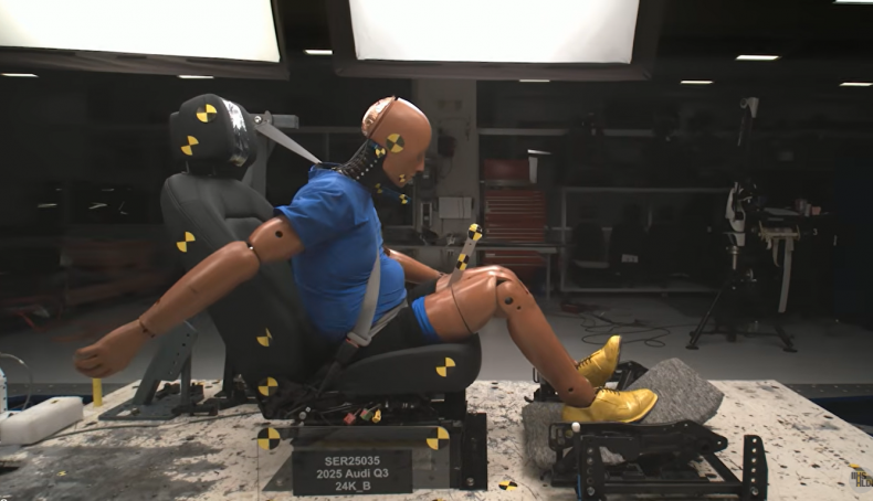 Pero volvamos al comentario anterior que se hace sobre una nueva prueba. Y es que desde este Instituto ya habían analizado las consecuencias que tienen las colisiones por detrás, pero han querido evolucionar el test. Ahora lo que se hace es retirar el asiento del conductor del propio vehículo y se fija a un trineo. Allí se coloca un maniquí con forma de hombre de talla media que tiene una columna vertebral articulada. Y lo que se hace es provocar una aceleración repentina del citado trineo para simular el efecto de un impacto trasero en un coche parado.