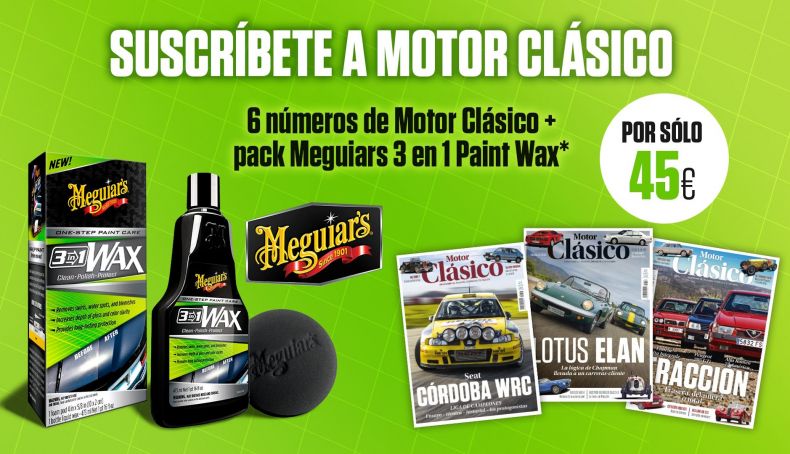 Si te suscribes ya a la revista Motor Clásico no solo obtendrás la mejor información del mercado sobre coches clásicos, sino también ahora el exclusivo pack 3 en 1 PAINT WAX de MEGUIARS. ¡No os lo perdáis!