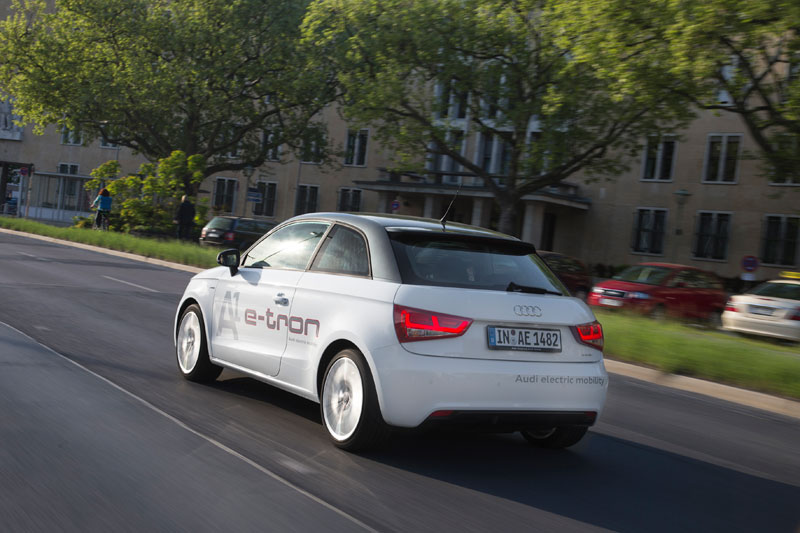 Sobre su modelo más urbano, Audi ha desarrollado un vehículo eléctrico de autonomía extendida, técnica que conocemos por Opel en su modelo de calle Ampera. En su caso, el A1 e-tron tiene un motor eléctrico delantero que rinde 115 CV de potencia y 31 mkg de par. Se alimenta de una batería de iones de litio que se recarga en un enchufe doméstico en 3 horas. Con esa carga, dispone de una autonomía de 50 kilómetros. Mientras las infraestructuras no den cobijo a los vehículos eléctricos (postes de recarga en las ciudades, como primer paso), Audi propone con su A1 e-tron no depender de segundas cargas diarias si los 50 kilómetros de autonomía nos resultan escasos. En este caso, un diminuto motor rotativo de gasolina que se ubica bajo el maletero del A1 e-tron, entra en funcionamiento, pero solo para mover un alternador que recarga la batería, para poder seguir moviéndonos, pero con el motor eléctrico como único impulsor del coche.