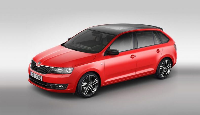 A diferencia del modelo de cuatro puertas, el nuevo Skoda Rapid Spaceback presenta una juvenil y atractiva carrocería de cinco puertas de dimensiones más contenidas, con una longitud de 4,30 m (18 cm menos que el Rapid), una cifra muy en consonancia con los vehículos del segmento C de los compactos. La distancia entre ejes se mantiene en los 2.602 mm, es decir, la misma batalla que el Rapid de cuatro puertas. A diferencia de su hermano mayor, el nuevo Rapid Spaceback presenta ciertos guiños deportivos en su estética exterior, con una caída posterior del techo más prolongada, la presencia en la parte final del mismo de un alerón de discreto tamaño y la incorporación para algunas versiones de un techo panorámico de cristal, que se prolonga desde el parabrisas hasta la luneta trasera. Otro de los rasgos distintivos del Rapid Spaceback lo encontramos en las múltiples opciones de personalización, tanto a nivel de diseño exterior como interior.