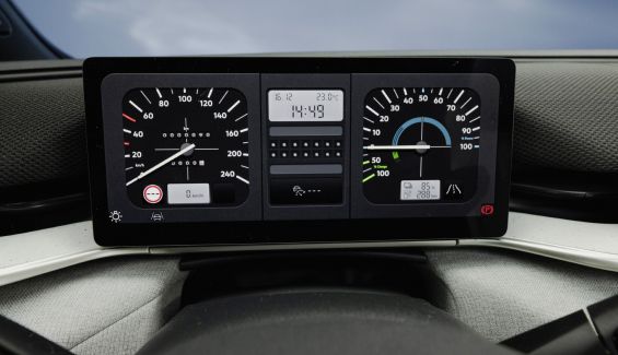 También nos han destacado desde la firma que ahora las líneas son más limpias. La verdad que la estructura del salpicadero es bastante horizontal y para nada recargada. De camino hacia él encontramos que el selector del cambio se ha colocado tras el volante ya analizado, que como veremos más adelante ha liberado mucho la consola central. Pero aquí me quiero fijar en el guiño clásico de los diseñadores. Este ID. Polo sí tendrá un panel de instrumentación grande, no como sucede en los anteriores ID, pues alcanzará nada menos que las 10,25 pulgadas y con una vista que se puede activar directamente que nos hará trasladarnos al pasado, concretamente a unos relojes del Golf I.