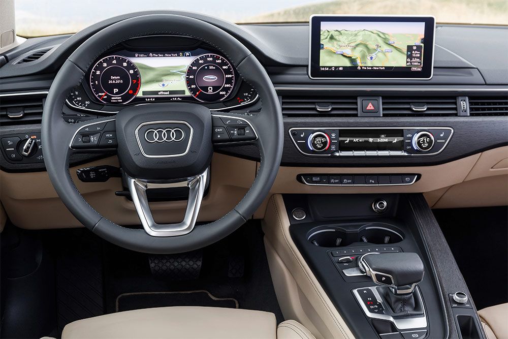 Según la versión de equipamiento (la mayor dotación de accesorios estará en el 2.0 TFSI de 252 hp), habrá soluciones ergonómicas inéditas en el A4, como los instrumentos del todo digitales y configurables en distintas vistas (Virtual Cockpit) o un climatizador de tres zonas con botones que además de presionarse también son táctiles (al tocarlos indican qué función desempeñan).