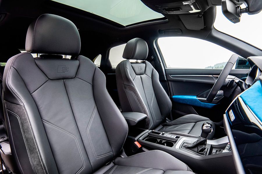 La Q3 Sporback S Line 40 TFSI añade, además del motor más grande, portón eléctrico automático, asientos delanteros deportivos eléctricos, sonido Bang & Olufsen, cámara de reversa, cristales de privacidad, detalles S Line, rines de 19” y vestiduras de piel y Alcántara.