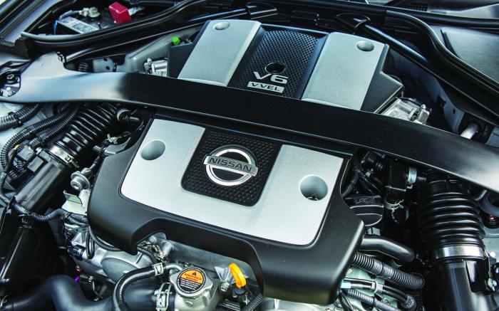 Que el 370Z sea más accesible lo es también por su mayor simpleza: su V6 aspirado entrega mayor potencia en el papel, pero el hecho de carecer de un turbocargador rebaja su torque y su margen de respuesta plena está arriba de las 4,000 vueltas, dando gusto subir por encima de las 7,000, momento en el que acompaña un ruido propio de un seis cilindros, no tan musical en relación a otras aplicaciones V6 en Nissan, pero que no deja de gozarse.