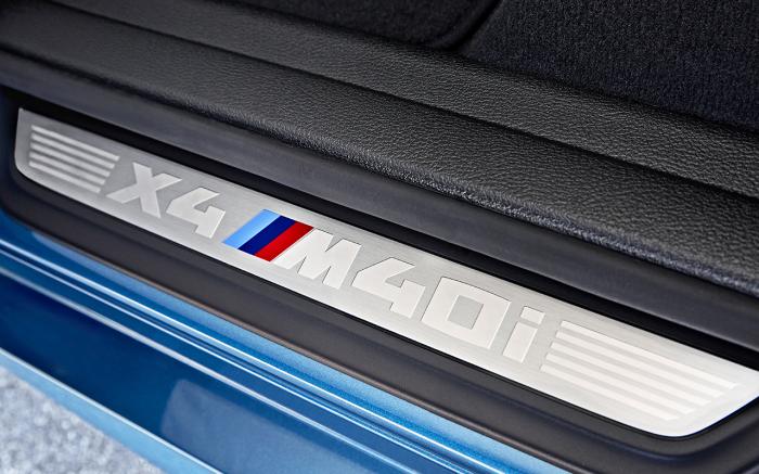 Estéticamente, la X4 M40i cuenta con detalles como retrovisores color gris Ferric metalizado, rines exclusivos M Performance de 20 pulgadas de radios dobles calzados con neumáticos Michelin Pilot Super Sport, sistema de escape con  tubos de color negro, volante y palanca de cambios “M”, asientos deportivos, emblemas “X4 M40i” en el tablero y los umbrales de las puertas y un exclusivo tono azul metálico Long Beach.