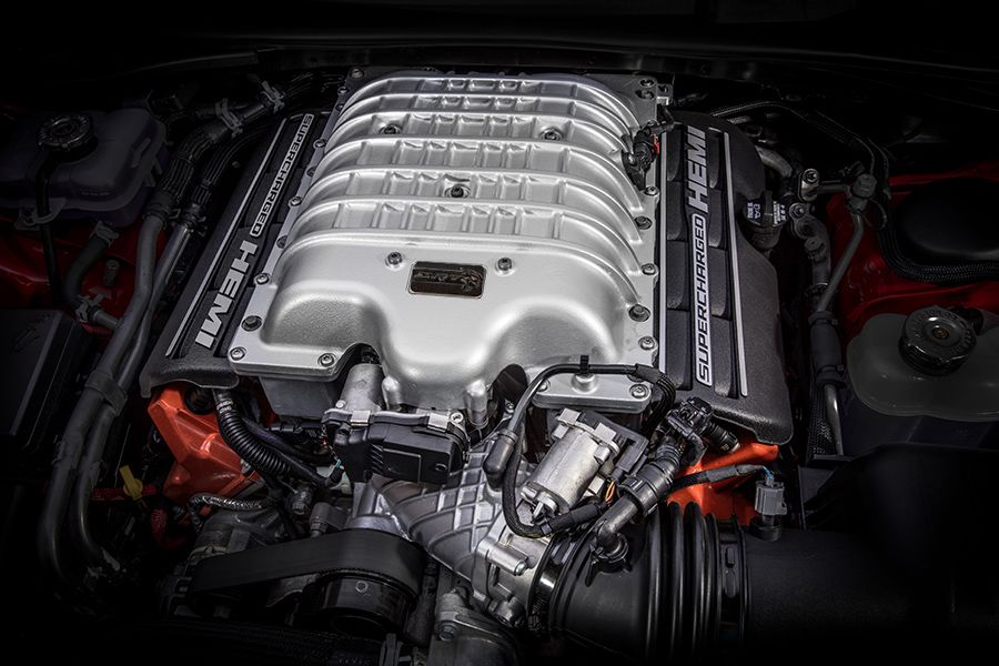 el supercargador tipo Roots más grande ofrecido en un vehículo de producción, pues desplaza 2.7 litros, frente a 2.4 del Hellcat ‘regular’.