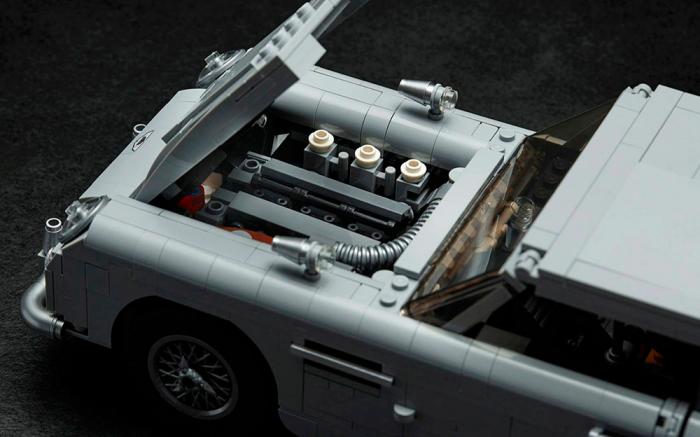 Este no podía ser el DB5 del 007 sin su asiento eyector, lo que se logra jalando el paragolpes, que abre el techo y lanza el puesto del copiloto al aire. Por supuesto, puertas, cofre y tapa de la cajuela vienen articulados, además, no puede faltar el motor de seis cilindros en línea.