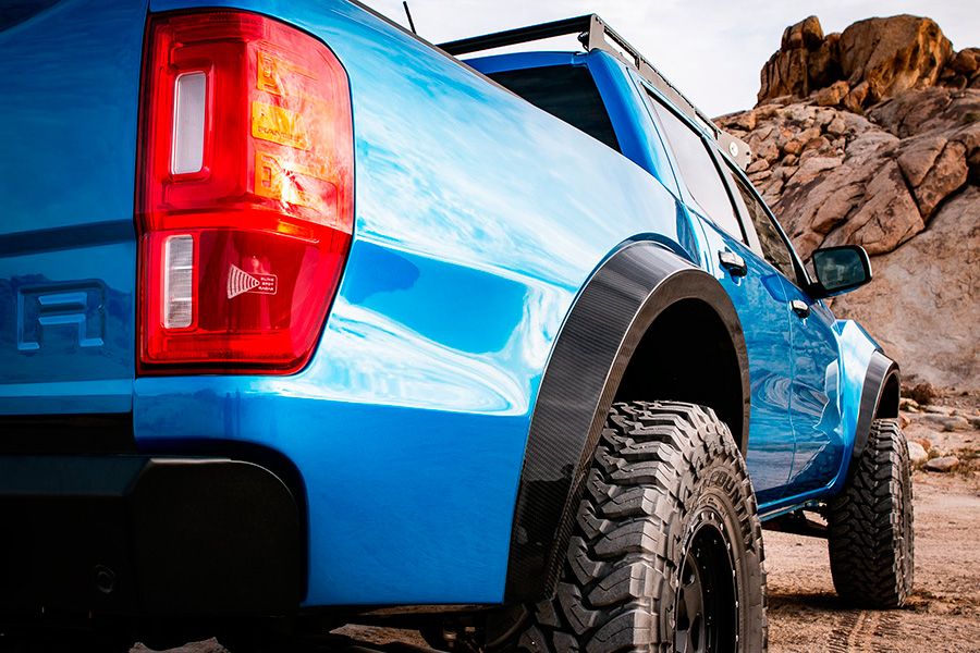El motor 2.3 l EcoBoost de la Ford Ranger para Estados Unidos tiene empuje suficiente con 270 hp y 420 Nm (310 lb-pie), por lo que APG (Automotive Performance Group) no se mete con él ¿Entonces, en qué consiste el kit Serie 1 de la ProRunner?, básicamente, en una nueva suspensión con un cuerpo ensanchado.