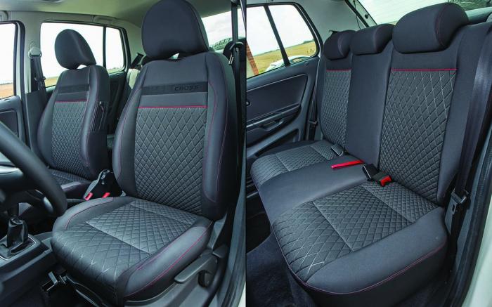 En lo demás, no se hace esperar la típica variedad de remates duros y lisos sin mayores detalles, botones de tacto económico para accionar las ventanas que conviven con otros mejor resueltos en el volante, o un armazón de los asientos muy visible en el CrossFox, que también peca por una cajuela descuidada, con la lámina interna del portón expuesta, una refacción externa aparatosa y con un soporte ruidoso y hasta los carretes de los cinturones de seguridad sin disimular, algo que no ocurre en la elaborada batea de la Saveiro, con protección para no dañar la pintura, además de un cobertor que se instala con rieles, tiene empaques para evitar la entrada del agua y una lona que se pone con correas.