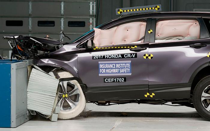 Pese a esto, la CR-V se las arregla para alcanzar el galardón Top Safety Pick+ (TSP+), que la reconoce como uno de los vehículos más seguros de su categoría. El sistema de frenado preventivo, denominado en la jerga de la marca Honda Sensing, obtiene la más alta calificación posible (Superior); lo mismo ocurre con la batería de pruebas de choque (impacto frontal al 50%, impacto al 25%, impacto lateral, impacto lateral contra poste, impacto trasero, volcadura), donde alcanza una calificación Buena.