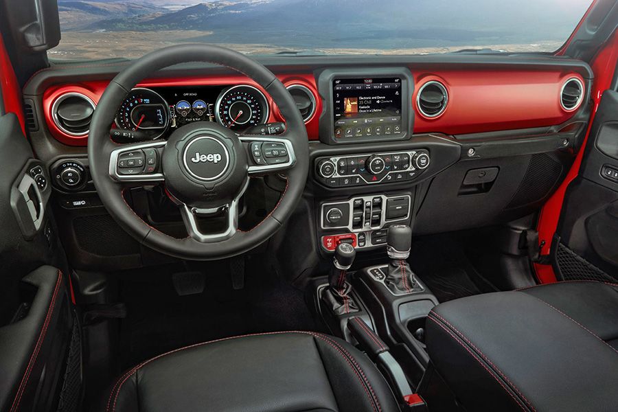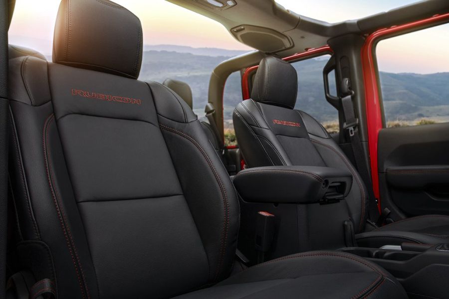 La carrocería y exterior también reciben equipamiento extra, como faros, calaveras, y auxiliares para niebla de LED, una defensa lista para instalar un winch (disponible más adelante, así como muchos otros accesorios del catálogo Mopar), recubrimiento de uso rudo para la batea, la cual también cuenta con una cubierta enrollable o desmontable, protecciones para los bajos del auto, estribos eléctricos calefactados, varias piezas al color de la carrocería, y el infaltable distintivo Rubicon en su cofre con extractores de calor funcionales.