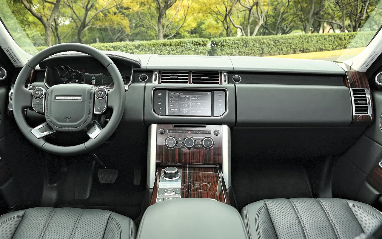 Y la Range Rover consigue justo eso. Omite verse recargada así alrededor nuestro se oculten al máximo superficies en plástico: puertas y tablero están forrados en piel en sus zonas superiores e inferiores (no se salvan ni las manijas del techo), rematados por apliques en madera y aluminio real, complementados por cada una de las gavetas con recubrimientos alfombrados en sus interiores.