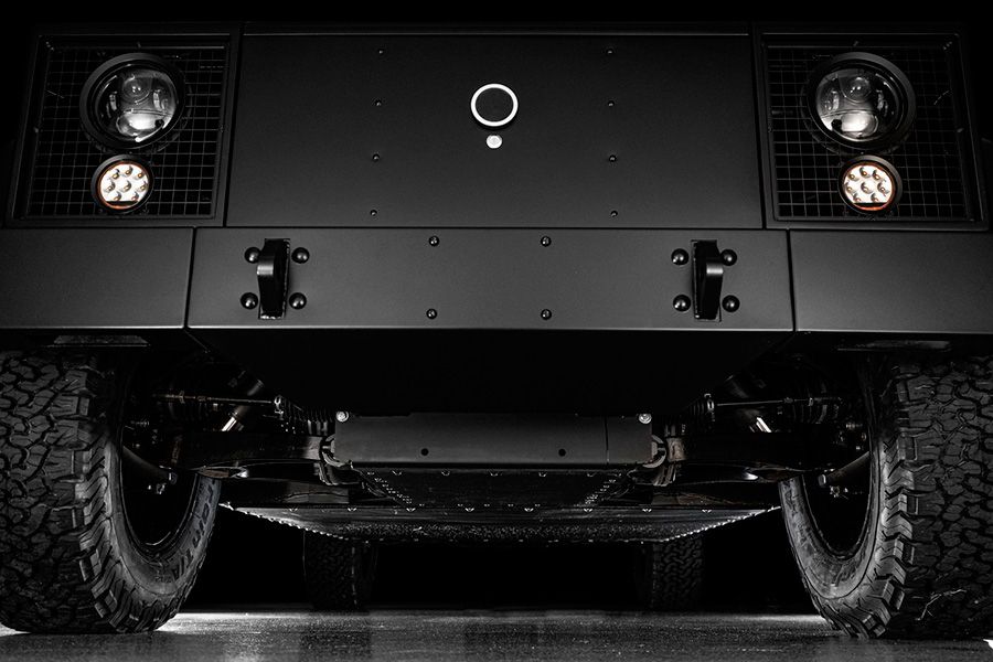 Bollinger B1 y B2 justifican su apariencia dura con detalles como rango bajo, bloqueo electrónico de diferencial, un despeje al suelo de 38 cm, 91 cm de vadeo, 25 cm de recorrido de rueda y suspensión autonivelable con 13 cm de juego. Los bajos están reforzados con