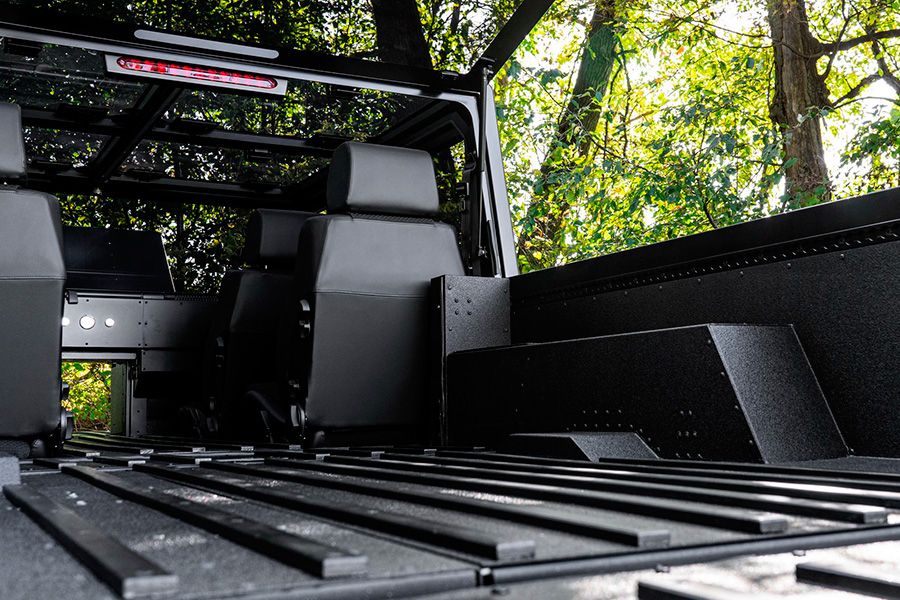 Parabrisas, techo y puertas son removibles, mientras que los asientos cuentan con calefacción y pueden ir forrados en tela, cuero o ‘cuero’ vegano. El aire acondicionado, las luces LED y las vistas de madera, aluminio y cromo