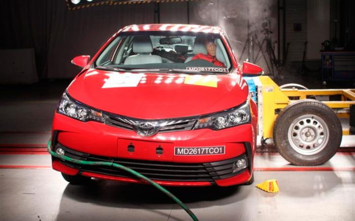 El Corolla Base vendido en México cuenta con ocho bolsas de aire, ABS y control de estabilidad, que fue el que se evaluó, aunque existe un grado para flotillas denominado “C” que monta sólo tres airbags, más las asistencias. El modelo prefacelift ya había sido valorado en impacto lateral en 2014, con buenas calificaciones. La versión brasileña cuenta con siete bolsas de aire, incluyendo de rodillas para el conductor, además de control de estabilidad.