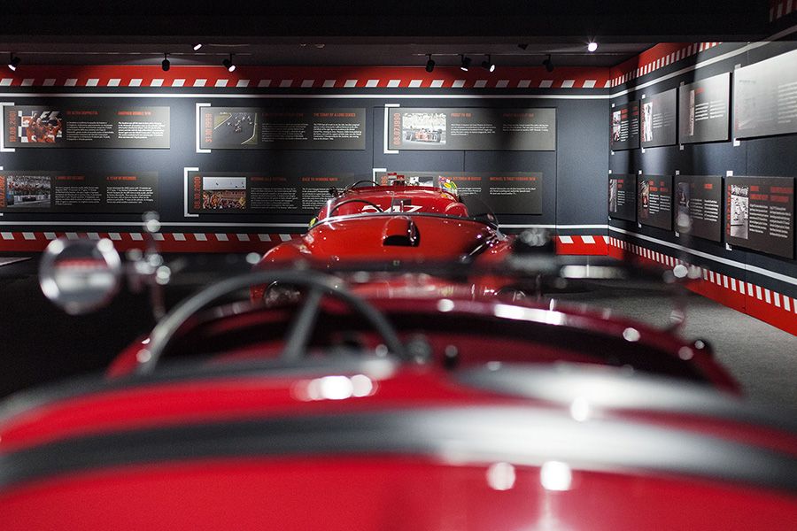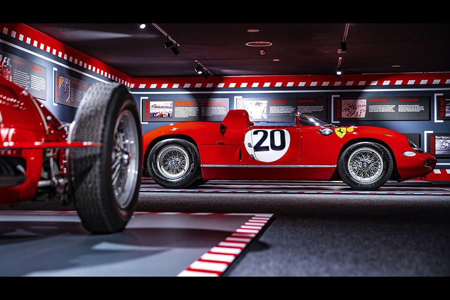 los coches de competición que forjaron el nombre del Cavallino Rampante en todas las disciplinas. Están presentes los primeros deportivos que corrieron en competencias de resistencia en caminos públicos, como la Mille Miglia, la Targa Florio y la Carrera Panamericana en los años 50; otra sección celebra los monoplazas de competición Grand Prix, antes de que se convirtiera en Formula 1, y claro, también la Máxima Categoría es celebrada, pues
