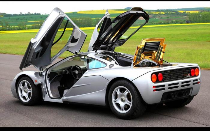 El McLaren F1 tenía un V12 6.1 litros atmosférico con válvulas de titanio desarrollado por BMW con 627 caballos y 480 lb-pie de par, capaz de girar hasta las 7,500 rpm. Montado en un vano motor recubierto con 16 gramos de oro, la carrocería era de polímero reforzado con fibra de carbono y la suspensión de aluminio y magnesio. El asiento del conductor estaba colocado en posición central, como en un monoplaza, pero estaba flanqueado por dos plazas más, ligeramente retrasadas. La aerodinámica (0.32 Cx) era auxiliada por un ventilador en los bajos que incrementaba el efecto suelo.