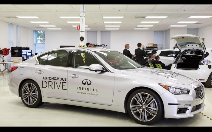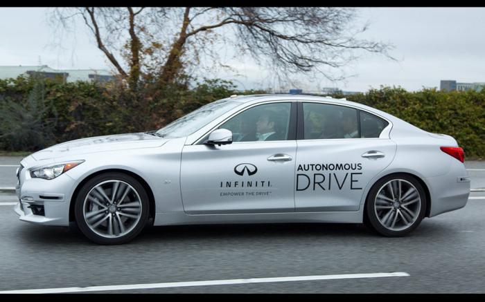 También se presentó un Infiniti Q50 con tecnología autónoma ProPilot que el ejecutivo probó en persona en las calles de California. Se puso como ejemplo la situación en que la policía desvía el tráfico por un accidente. Una persona reconocería rápidamente las señales y los ademanes de los oficiales, pero un vehículo autónomo no. En ese caso, la computadora cedería el mando a un piloto humano, pero “aprendería” de la reacción de éste para futuros eventos. Más aún, podría compartir la información con otros autos, generando una red de conocimiento creciente, o lo que en Nissan denominan “movilidad autónoma sin fisuras”.
