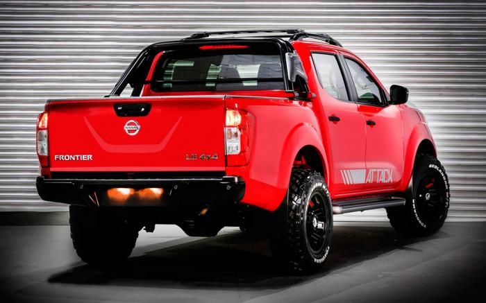 Diseñada para ir a donde ninguna otra Frontier ha ido antes”, el concepto Attack parece listo para medirse contra el Rally Dakar. Una suspensión revisada aumenta en 40 milímetros la altura libre, lo que también ayuda a recibir unos enormes neumáticos para todoterreno serio firmados por el especialista Yokohama.