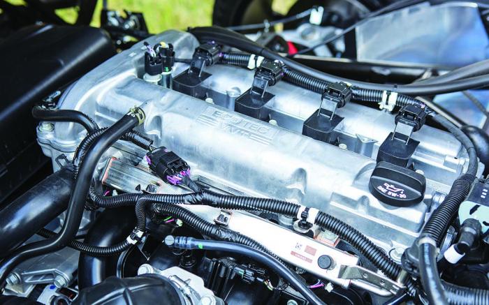 Ya encaminados, va quedando clarísimo que el Slingshot merece un mejor motor. El 2.4 l sacado de un Solstice o un HHR peca de demasiado normal en un vehículo muy lejos de serlo. Para evitar una respuesta laxa, hay que mantenerlo arriba de 3,500 o incluso 4,000 vueltas constantemente. El corte de inyección llega en la frontera de los 7,000 con un ruido de fondo que pecaría de convencional, de no ser por la amplificación vía escapes que lo hace cantar con una tonada más ronca, sumándose al muy evidente sonido de la admisión al acelerar a plena carga.