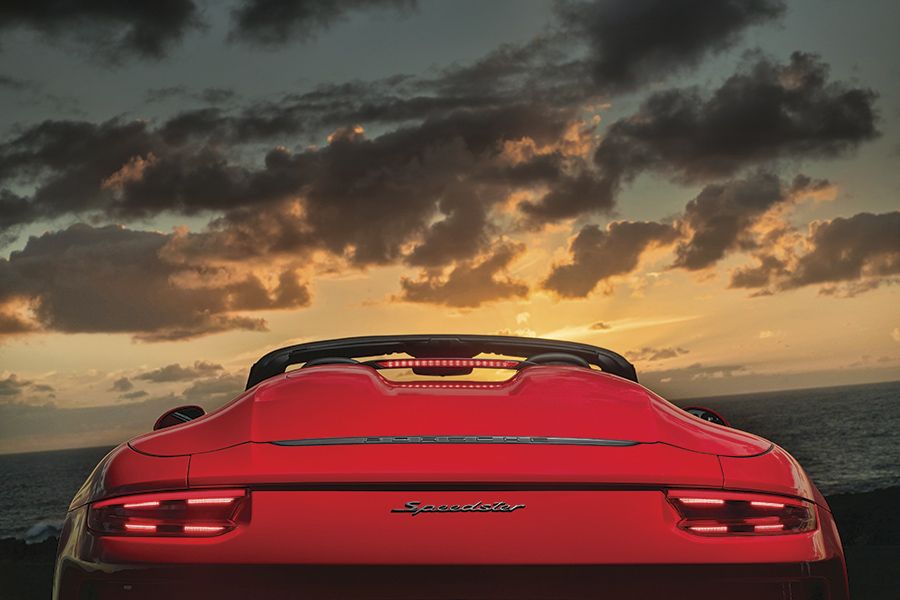 la línea del coche, con su parabrisas inclinado, mantiene un equilibrio perfecto. Si bien un Speedster es para verlo siempre abierto, los techos están pensados solamente para el “por si acaso”.