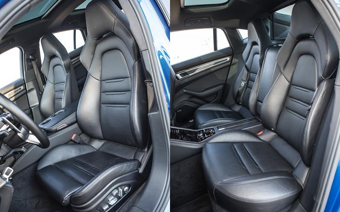 Más de cinco metros de largo y dos de ancho pueden intimidar, pero dominarlos en el caso del Panamera es algo que no implica mucha costumbre, eso por una postura de manejo impecable que nos deja ir bajos pero siempre con la correcta visibilidad virtud de unos retrovisores bien ubicados, una banca baja, volante cercano y en perfecta vertical, pedales profundos y múltiples ajustes que van desde el largo del cojín inferior hasta los pétalos que soportan piernas y torso. La cabecera fija y que el no tan ancho respaldo no esté separado en dos piezas (como en un Clase S o un Serie 7) delata que el asiento no tiene una orientación total hacia la comodidad, pero eso no sacrifica nuestra espalda al efectuar largos trayectos. Este largo Porsche, al final, es un sedán corporativo emparentado con un Gran Turismo.