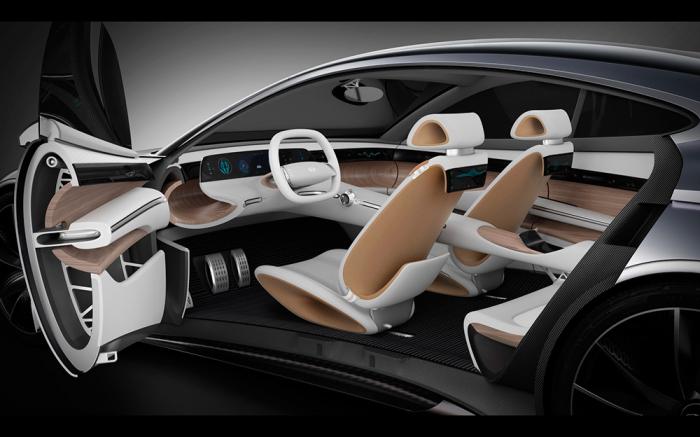 La propuesta se completa con un techo de cristal de doble burbuja que une parabrisas y medallón, así como puertas traseras suicidas, además de un volante y pedales, en oposición a otros conceptos futuristas. Luc Donckerwolke, jefe de diseño de Hyundai, no fue tímido al hacer referencia a la proporción áurea.
