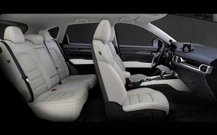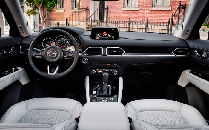 El acabado de pintura Takamuri visto en la CX-9, que le da una apariencia líquida, especialmente con este nuevo tono Soul Red Cristal, también está presente. Las cotas no sufren mayores modificaciones, mientras que el interior también recibe inspiración de su hermana mayor con un nuevo volante y un tablero completamente rediseñado con formas más angulares en la cúpula y las salidas de aire, además de un acomodo en capas horizontales y una pantalla flotante para el sistema de infoentretenimiento.