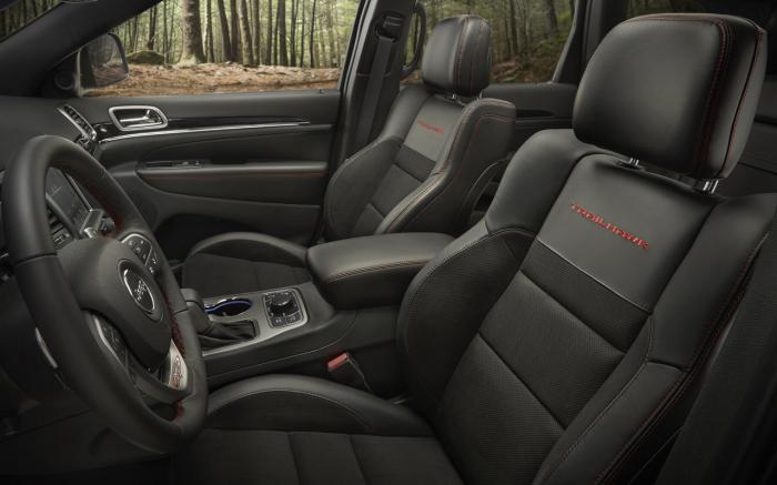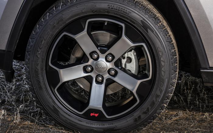 Conocido ya en la Cherokee y Renegade, el acabado Trailhawk de la SUV grande viene acompañado de un paquete estético con rines específicos de 18 a 20 pulgadas calzados con neumáticos Goodyear reforzados con Kevlar, nuevas fascias, estribos, grupos ópticos oscurecidos y detalles negros en los bajos, la parrilla y la tapa del cofre, así como ganchos de arrastre destacados en rojo y ausencia de cromo al exterior.