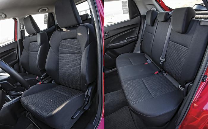 Del lado del Swift figuran terminados más bien promedio pero de buen gusto. Se nota la falta de un aislante sonoro más efectivo pues se percibe el ruido de la rodadura más de lo que nos gustaría. Eso sí, la cúpula tiene ese aire retro que enamora y sus mandos son terriblemente intuitivos, fáciles de memorizar. Además, el Suzuki posee buen equipamiento en comodidad –climatizador automático–, y seguridad –seis bolsas de aire, ESC–, asientos de mejor soporte lumbar y cámara de reversa. Eso sí, el Ibiza monta techo solar como extra, vestiduras específicas y las versiones más recientes ya incluyen las seis bolsas de aire y el ESC, un rubro apenas actualizado para encarar mejor al segmento porque el primer lote de Ibiza FR sólo ofrecía dos bolsas de aire. ¡Bien corregido SEAT!