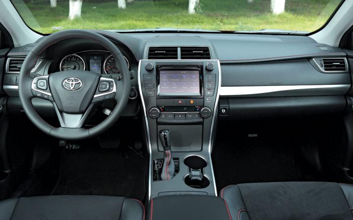 En esencia, el Camry es un sedán familiar que ha ido recibiendo algunos elementos de corte más agresivo para volverlo más atractivo al público. El interior transmite esta intención, pues ofrece detalles como asientos de piel con contrastes en gamuza y costuras en rojo, patrón repetido a lo largo y ancho del habitáculo.