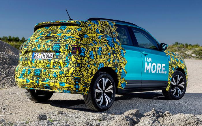 Pese a los plásticos multicolores, se corrobora lo apreciado en los bocetos previos, perfiles más rectos contra la T-Roc, influenciados por la Tiguan y un frente que remite a modelos recientes de la marca como la Touareg, el Jetta, la mencionada T-Roc y el concepto T-Cross Breeze que adelantó al modelo.
