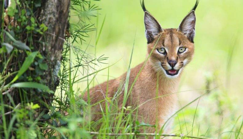 Los linces caracales también son popularmente conocidos por su capacidad para cazar aves de forma sigilosa y alimentarse de ellas. Habita sobre todo en países del continente africano y algunas zonas de Asia.