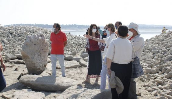 Un momento de la visita al Dolmen de Guadalperal, en el embalse de Valdecañas.