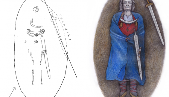 El individuo enterrado estaba vestido con ropa femenina típica de la época y llevaba una espada (aunque aparecieron dos), que a menudo se asocia con la masculinidad