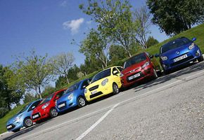 — Coches anticrisisCortos, ligeros y muy económicos. Sólo al verlos pudiera parecer que, como los móviles, los más pequeños utilitarios se encuentran lejos de las calles fuera de cobertura. Y, evidentemente, no es éste su hábitat natural. Sin embargo, las nuevas generaciones llegan cada día más preparadas para salir a carretera, lo que supone un gran valor añadido. Ford Ka, Renault Twingo, Suzuki Alto, Kia Picanto... la mayoría muestra que, salvo por espacio, a velocidades legales permiten un cómodo viaje, con la ventaja de un bajísimo consumo. Sólo conviene concienciarnos de sus límites y anticipar posibles frenadas.Poco cuerpo para tanta exigencia: paga su menor tamaño y peso (éste de sólo 861 kg). Esto le convierte en rápido de motor y en el que menos gasta también (únicamente 5,25 l/100 km de media), pero también en el menos estable, más sensible a la velocidad y el que peor frena. En sonoridad, también a la cola. Lo que no significa que, por agilidad y ligereza, sea divertido en carreteras viradas, mejor cuanto más ratoneras.Ya lo acuñamos: Ka de Kart. El pequeño Ford regresa con puesta a punto para carretera. Tarado enérgico de suspensión, directa dirección, gruesas estabilizadoras y los neumáticos más anchos y de menor perfil. Conclusión: sólida pisada, gran agilidad en curva y la mejor frenada. Su motor 1.2 se mueve bien y con bajo consumo. Tacto de coche superior.Comparte chasis con el Kia… pero se siente algo menos pulido. Sin gran diferencia en tacto de mandos, es más seco de suspensión, absorbiendo peor su paso en asfalto y, sin embargo, sin mostrar mayor eficacia dinámica. Sólo mejora en mordiente de frenada, pues aun con igual motor sus largos desarrollos obligan también a recurrir con mayor frecuencia al cambio.Lo suyo es hacerlo todo fácil. Junto al Renault Twingo, el más cómodo en desplazamientos, aunque ataja algo peor el movimiento vertical de carrocería. Confort de amortiguación, suavidad de dirección. Con gran estabilidad lineal en autopista, es todo agrado. Es el menos potente, pero sus bien elegidos desarrollos de cambio favorecen prestaciones suficientes.Junto al Ford Ka, el más elaborado y refinado del lote. Ligeramente menos eficaz que el Ford, sacrifica deportividad por el mayor confort de rodadura y amortiguación. Cuenta con el motor oficialmente más potente y con mejor aceleración. Incluso discutiría el reinado del Ford Ka en este apartado si pudiera equipar control de estabilidad ESP en esta versión: un lastre fundamental en coches tan livianos.Ligero, el humilde Suzuki Alto sube al pódium en este apartado con un gran motor. No llega al litro, pero su rendimiento es ejemplar: da más de 80 CV en banco, es muy elástico y un mechero en consumo. Además, suena poco… aunque vibre algo: su mayor lunar junto a desarrollos de cambio largos que perjudican recuperaciones. El bastidor cumple con gran aplomo y buena conducta.— Fichas técnicas del Citroën C1, Ford Ka y Hyundai i10