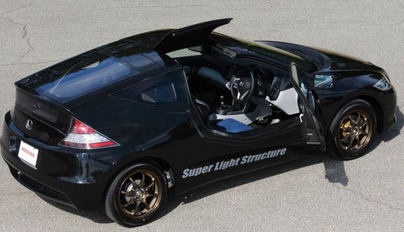 Su aspecto es de Honda CR-Z, pero solo es eso, porque está completamente transformado alrededor de un bastidor de fibra de carbono. Datos, ninguno, salvo la intención con la que nació, que era fabricar un chasis la mitad de pesado que uno realizado en acero. Tras los grandes superdeportivos, BMW se ha lanzado en la producción en series ininterrumpidas de grandes elementos en plástico reforzado con fibra de carbono en los BMW i3 e i8. VW pretende que su XL1 avanza el estudio de cómo fabricar económicamente en serie bastidores en fibra de carbono. Honda parece que quiere avanzar en la aplicación de la fibra de carbono.