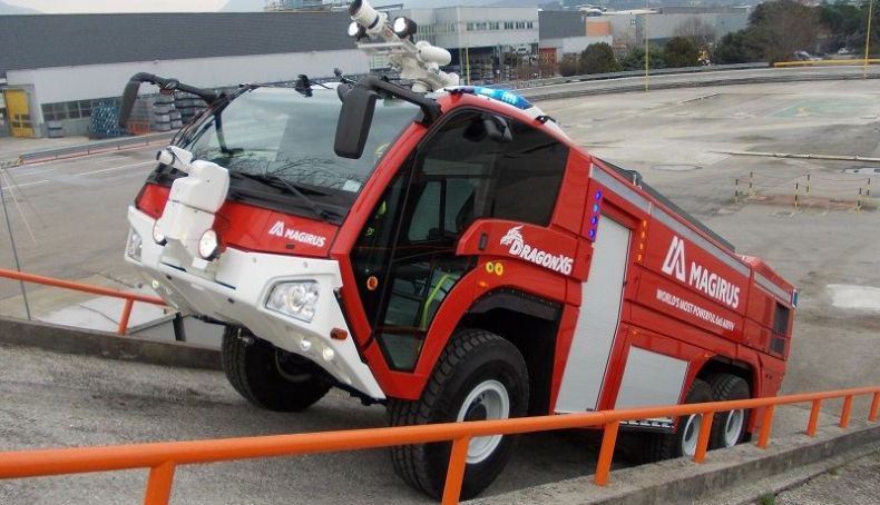 Pueden lanzar hasta 6.000 litros por minuto de agua, polvo y espuma a una distancia de más de 90 metros y a una velocidad de 100 km/h a través de dos salidas, una frontal y otra ubicada en la parte superior de la cabina. Iveco Magirus ha entregado ya más de 300 unidades del modelo Dragon a diferentes aeropuertos de todo el mundo.