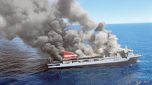 El Sorrento, incendiado el pasado 28 de abril a 18 millas al suroeste de Mallorca, permanece atracado desde el 6 de mayo en el puerto de Sagunto a la espera de que concluya la investigación sobre las causas del fuego y de que el juez ponga el barco a disposición del Grupo Grimaldi.WAILIANCONTENT_0